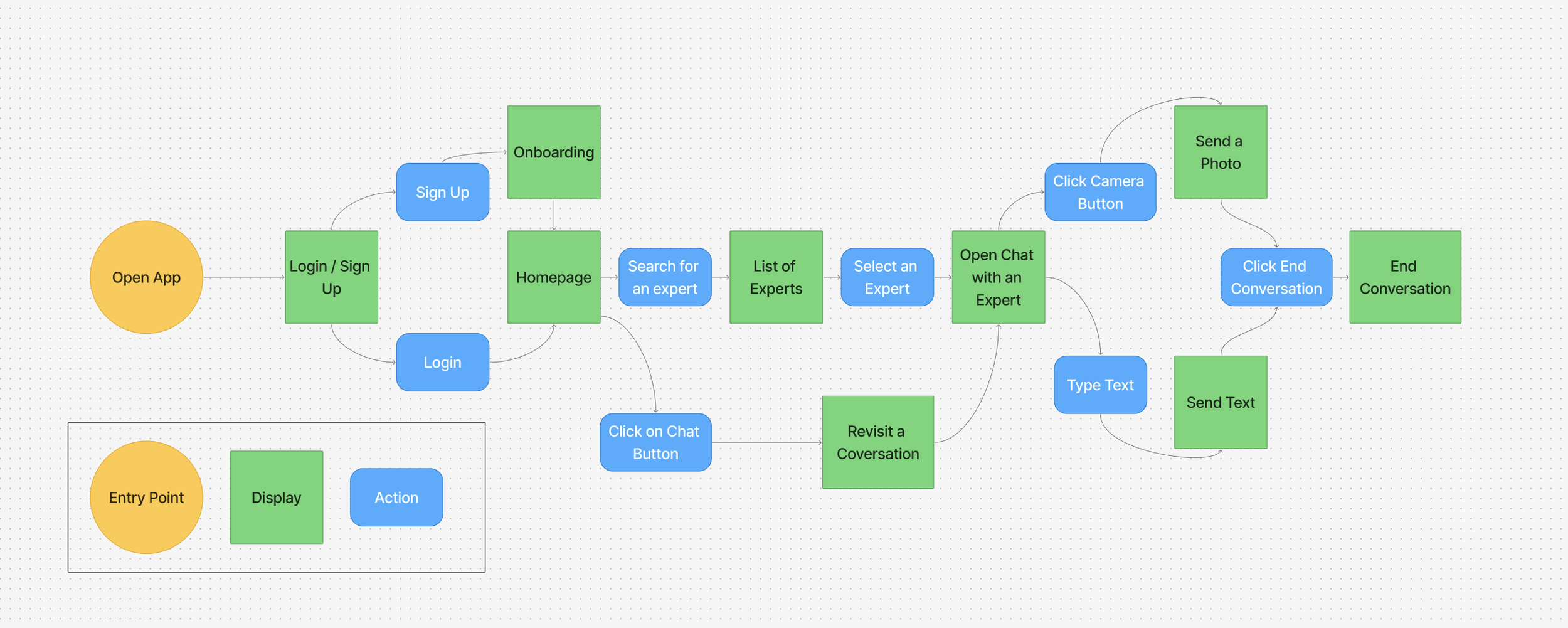 This user flow illustrates how a user would be able to chat with an expert.